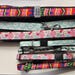 Our cat collars are 3/8" wide and fully adjustable, they have a safety breakaway clip and metal D ring to attach your own tag or bell.