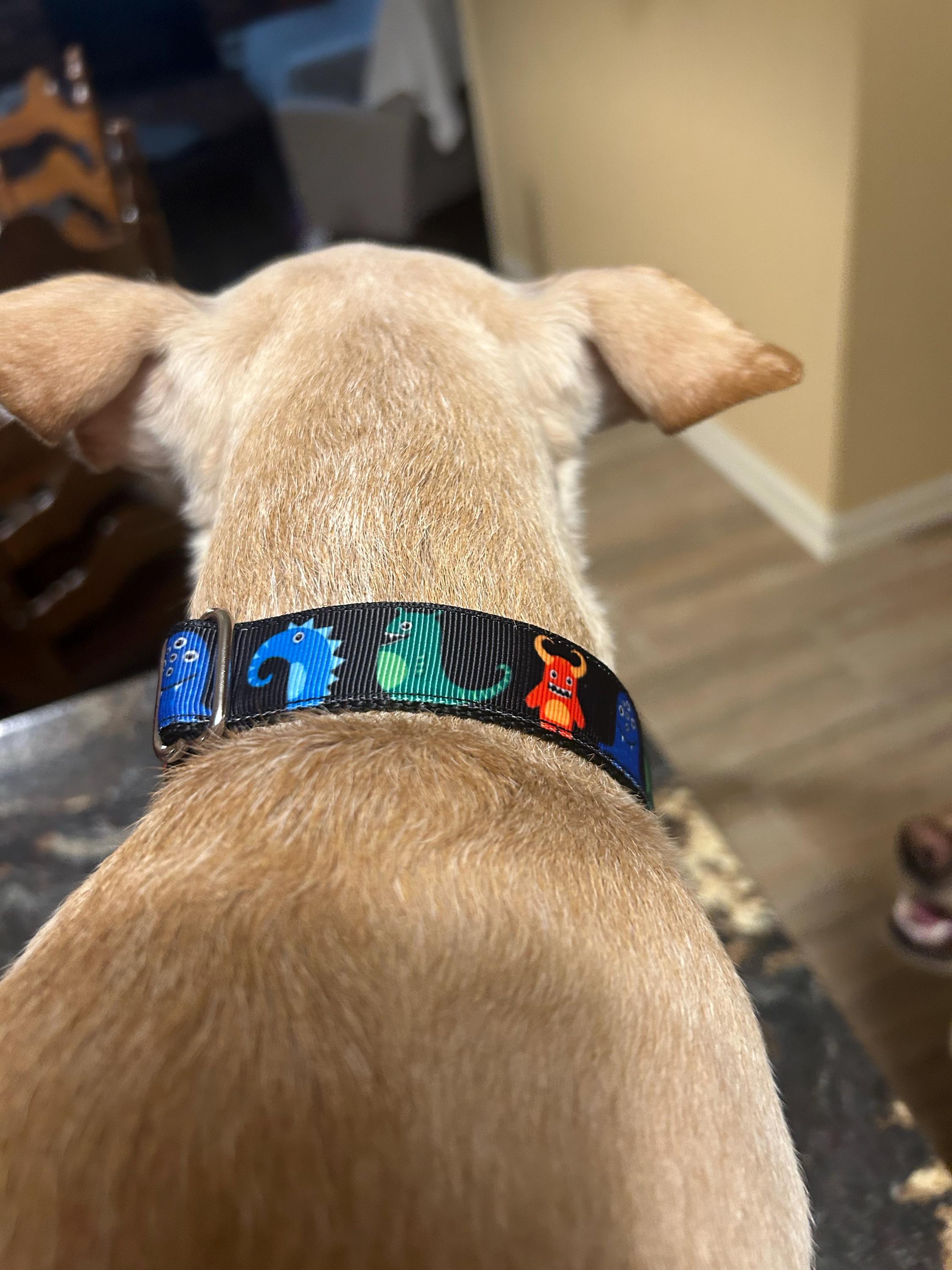 Collar is cuter in person than in the pictures. Seems to be well made. Package arrived a couple days later than shipping estimate, but that was not a problem. Love the way it looks on my dog.